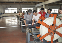 在地暖分厂的PE-RT管材生产车间,刘浩秘书长深入查看并仔细了解了代表世界先进工艺水平的巴顿菲尔高速生产线的性能和特点,并询问了相应配套管件的生产情况。