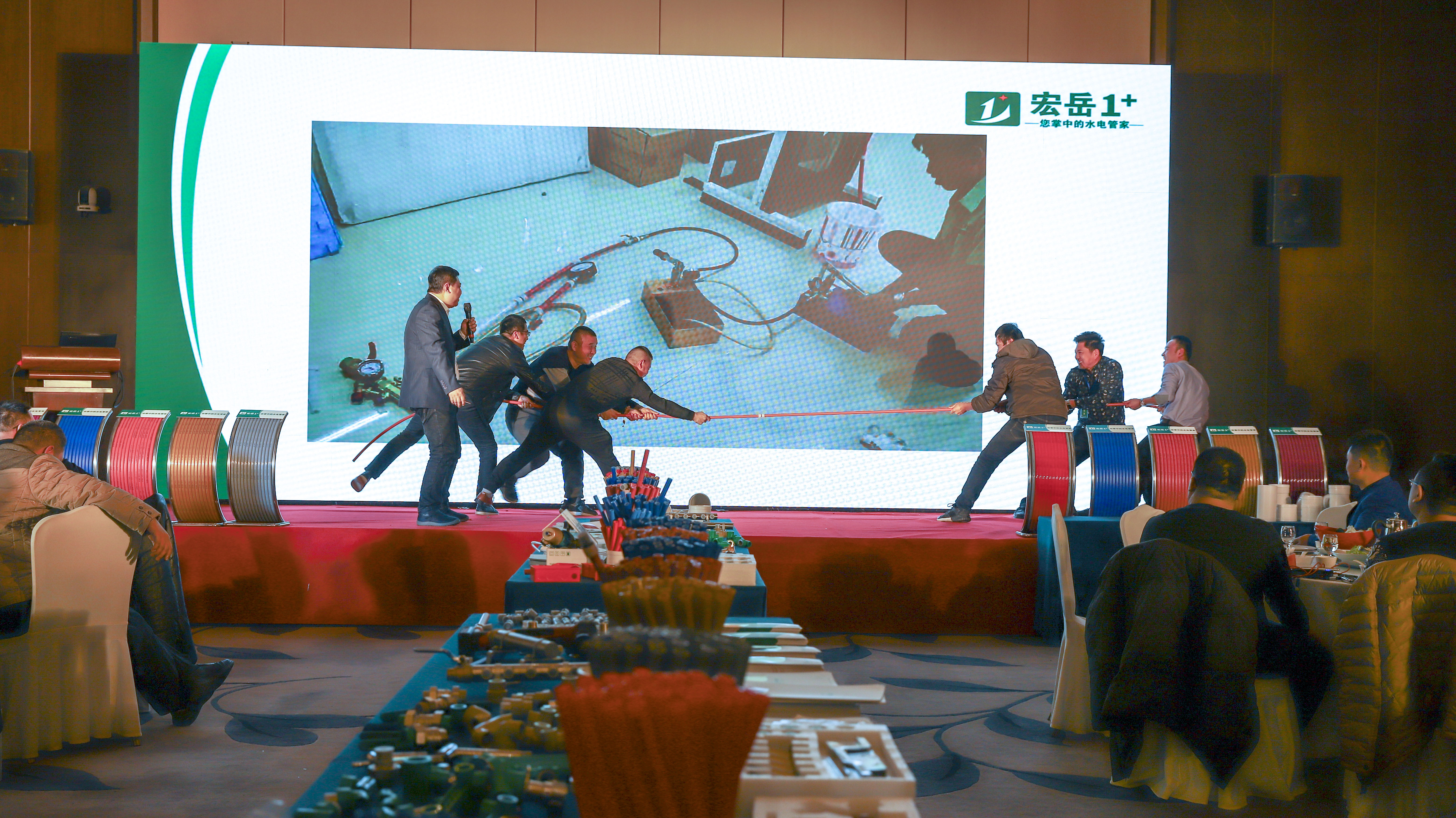 重点提出好博(中国)体育1+PE-Xa给水系统较目前市场主流给水系统降低70%的风险点,耐压高67%,耐温高32%,会上通过现场实验,展现了PE-Xa给水管超强的记忆功能,应对变形折伤加热即可无损复原。