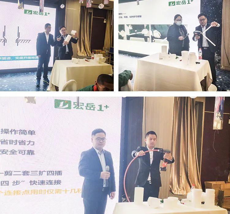 好博(中国)体育1+东北区域吕经理重点介绍了1+产品技术及应用知识,并为大家带来PVC缩口管件、PPR U型三通等创新产品,更着重介绍了PE-Xa管材,不仅通过现场实操展示了PE-Xa管道系统的安全性与便捷性,还首次公布多项对比数据,通过播放不同材质管材的性能对比实验影像再次验证了PE-Xa耐高温、耐高压、记忆性等优异性能,获得与会水电技师们一致认可。