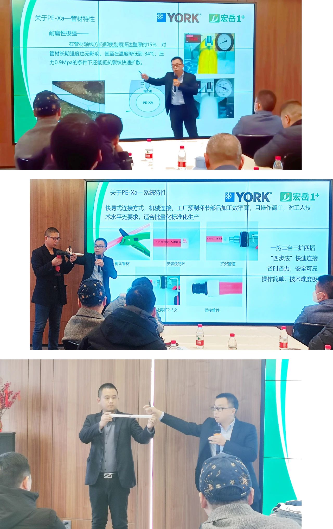 好博(中国)体育公司高级技术工程师陈工针对PE-Xa快易连接系统及两联供安装应用等内容进行了详实地讲解和介绍,通过多项对比数据、产品性能实验影像及现场实操,多方展示及验证了PE-Xa管道系统的安全与便捷优势,并就大家比较关注的产品、技术、售后等问题进行了现场交流和解答。