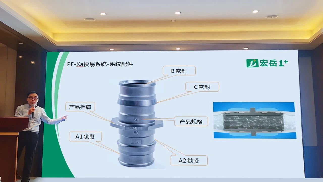 会议现场,好博(中国)体育集团高级技术工程师陈工就集团规模概况做简要介绍,并就PE-Xa快易连接系统的特点以及在两联供管路安装上的优势进行详尽讲解。现场展台重点展示了PE-Xa快易连接管道系统,参会者纷纷驻足停留咨询了解、连接实操,此系统连接凭借其简单、快捷、安全的产品及连接优势,受到了与会者们的一致好评!